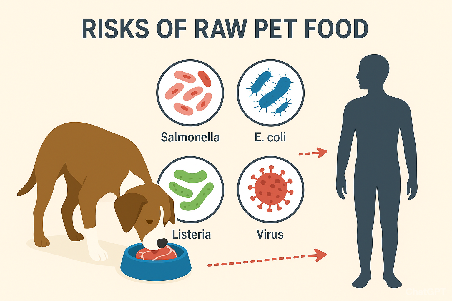 - Cross-contact: Humans handling raw pet food may inadvertently spread pathogens to countertops, cutting boards, or their own meals if hygiene is lax.